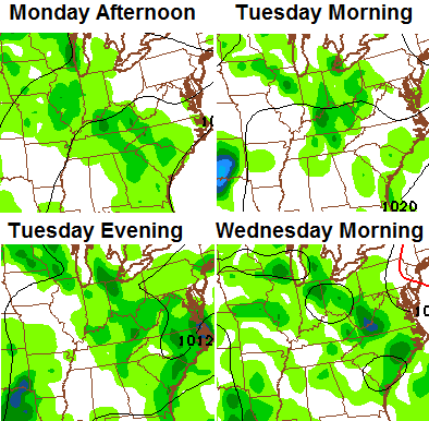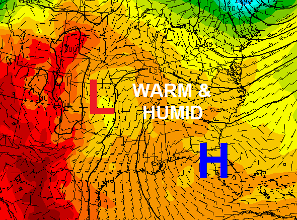The warm and humid air will really increase into Memorial Day as scattered storms develop. Those storms look to settle in for most of the week as our flow comes from the western Gulf…