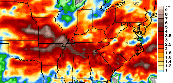 Hey, notice the blue hole over Kentucky on the last rainfall map? I’m guessing that’s where Todd lives because it overlaps Franklin County just about. I have had my temporary fill with the storms 2 days ago when I got 2 inches of rain. I just hope we get some widespread storms or mini droughts will start forming around the area. Other than that, the weather for graduation today looks perfect!