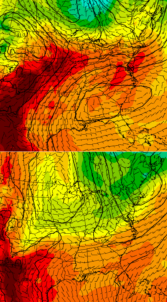 Showers and thunderstorms will then ramp up even more from Friday through the weekend. We will actually need to keep a close eye on the potential for clusters of strong storms diving in from the northwest. That action may hang around into early next week as cooler air moves in. Check out the change from now to then…