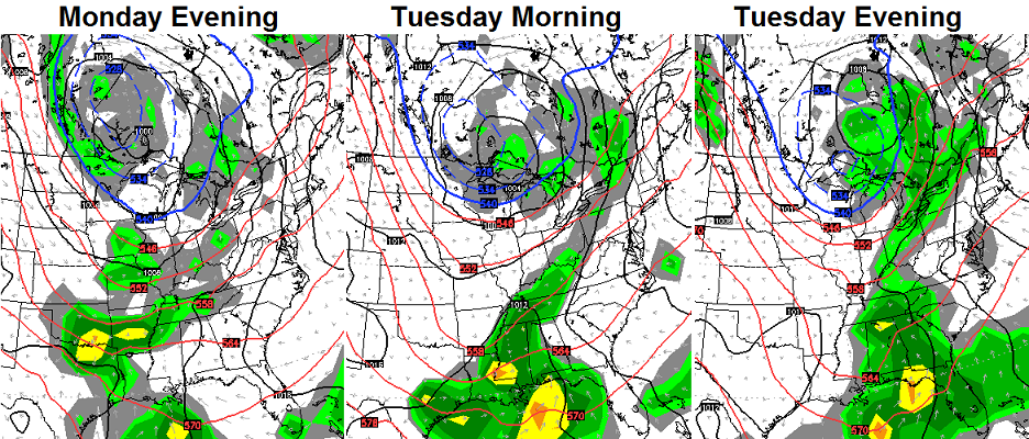 That means an increase in rain for Monday and Tuesday as low pressure develops just to our south…