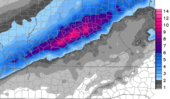 It always trends north, maybe someday it will come our way in Southern Kentucky. It is fun to dream though.