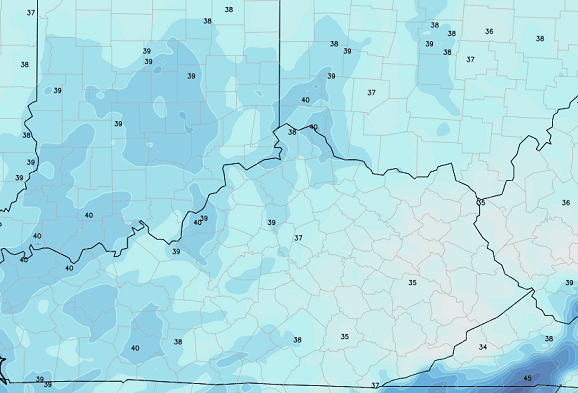 That shows a period of light snow Monday night and Tuesday morning with snow showers and flurries into Tuesday night across central and eastern Ky. Again… the exact details on how this all plays out will show themselves later in the weekend.