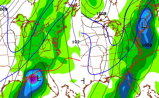 The big cutoff low across the northeast continues to show up slower on the American Models. Check out the NAM…