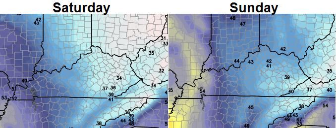 The numbers continue to come in colder for Saturday and Sunday with the NAM leading the charge. The Hi Res run for Saturday highs…