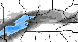 The model run he shows here accounts for cold air damming into WV and backside frozen precip into western Kentucky and Missouri and Arkansas. The beautiful fanning out of frozen precip on the last frame of that model run looks exactly like what a simulated radar around here usually looks when we’re on the fence for a frozen precip event. If that model run is to be taken seriously, it doesn’t show much for us, except maybe in the far northern parts of the state (Florence, Covington.)