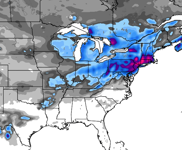 The models are following that up with the potential for another system by the middle of the week. The new version of the GFS spits out a monster up the coast…