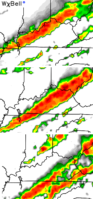 The first line of storms drops in late tonight and early Monday. That line weakens as it crosses into Kentucky. Another line of storms will quickly develop during the afternoon and sweep across the state through the evening. That line may bring an increased threat for damaging winds.
