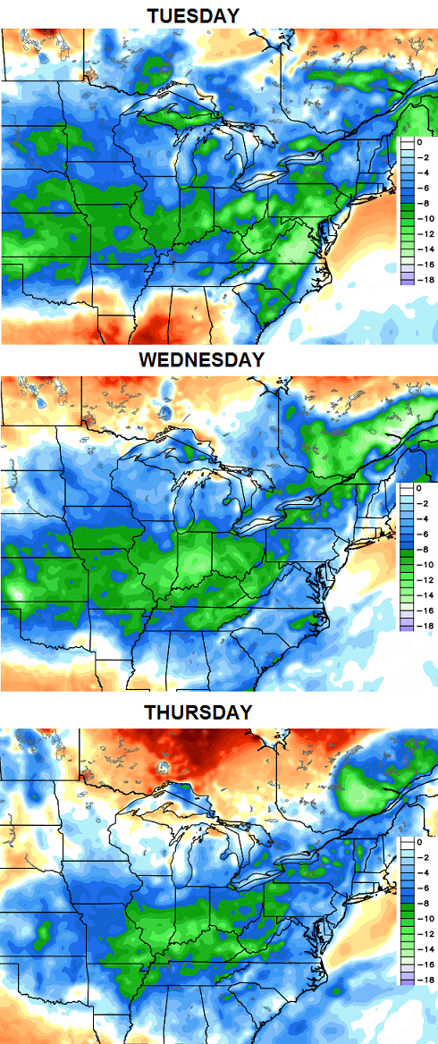 That’s a very impressive looking system for this time of year, and it unleashes a deep trough to dig into the east. The European Model shows highs going well below normal again…