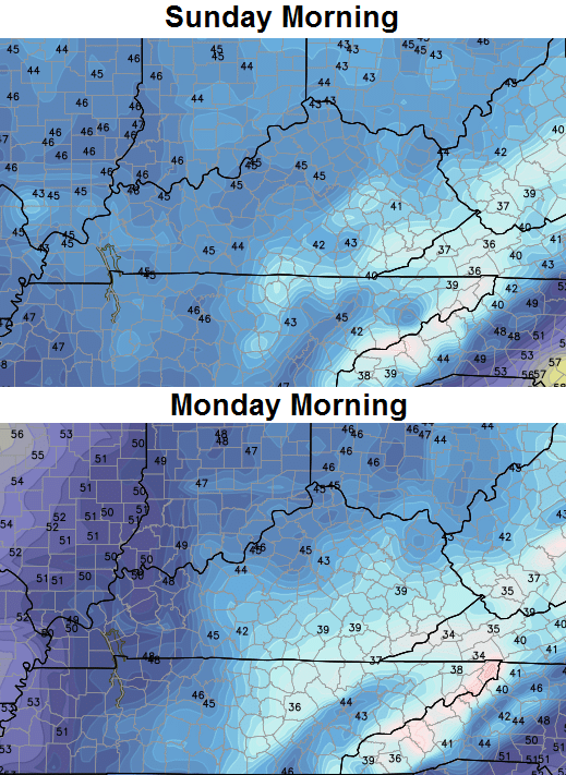 If skies can clear out for the morning hours on Sunday and Monday… look out. Readings can really tank and the GFS is going to the extreme…