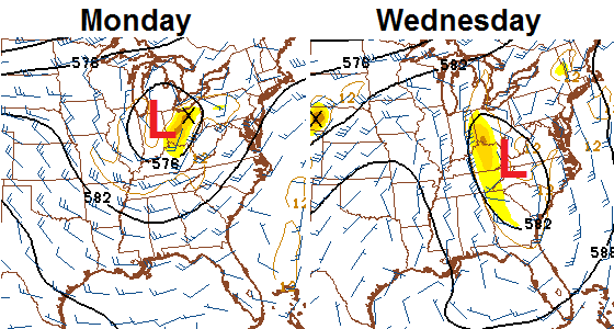 That sets the stage for a possible unsettled period showing up next week. An upper level low may develop across our region and hang around for much of the week…