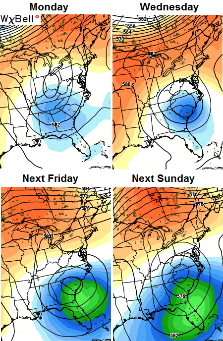 The overall setup for next week still looks rather unsettled for Kentucky and much of the region. A big upper level low is forecast to get cutoff from the main flow. That often leads to a slow moving system that hangs around for days. The GFS continues to indicate this thing getting stronger in time…