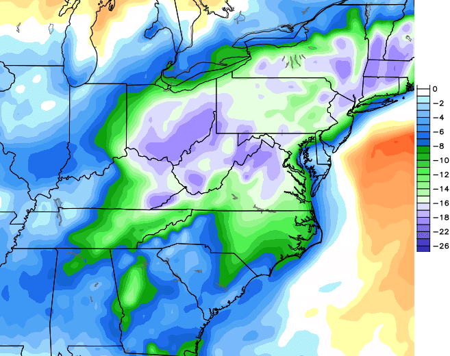 The GFS doesn’t show that much of a connection and keeps things moving along pretty quickly. It still gives us some decent showers and storms Tuesday into Wednesday with slightly cooler air to follow.