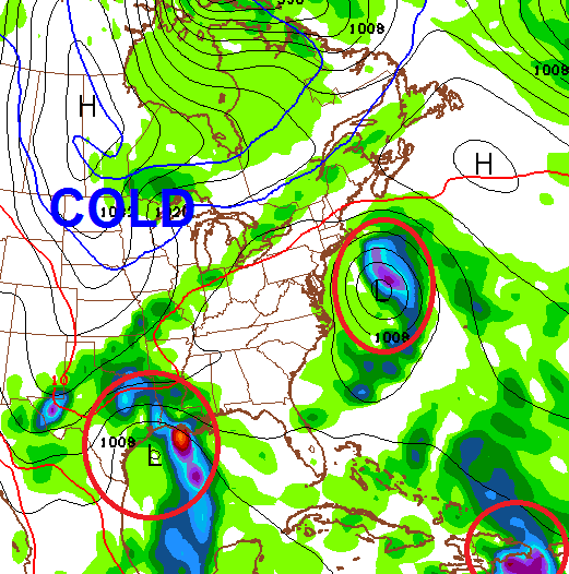 What happens beyond this week will be dictated by what’s going on in the tropics. A late season tropical surge of activity is likely in the Gulf and Atlantic over the next few weeks. Check out just how busy this map is by early next weekend…