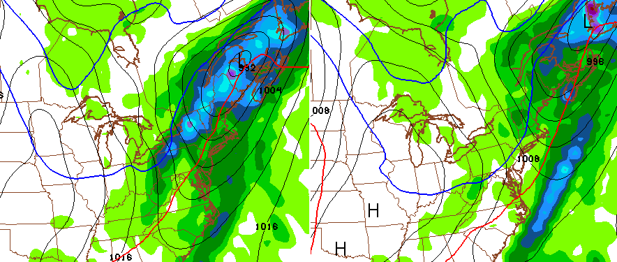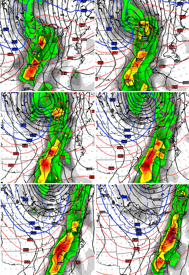 The European Model has a slightly different solution with the same end result. It features a stronger northern stream system winding up across the lakes with a potent low lifting slowly northward from the Gulf into the Carolinas…