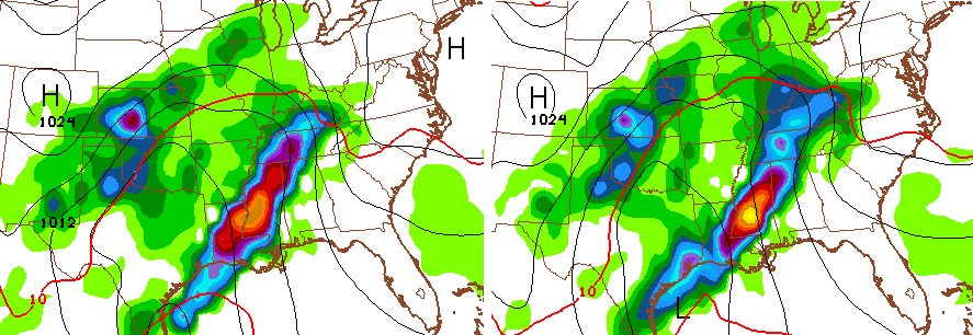 The setup from Tuesday through Thursday continues to get my attention. Our low in the Gulf will lift northward into our region and combine forces with another system diving into the Midwest and Great Lakes. The models are now quicker in bringing the heavy rains in here with many showing the actions starting late Monday. Watch the progression from Monday Evening through Wednesday Evening…