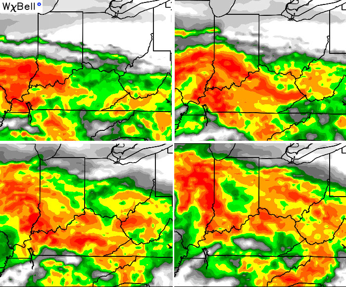 WOW: The recent frosty mornings followed by several warm, sunny afternoons have set the trees on fire in Harlan County KY. This is one of the best color shows I have seen in many years! Hopefully if the computer guidance is correct and keeps most of the rain north and west of my location, the fall colors may make a good show through most of next week. It really depends on how much wind makes it down here later next week too though…