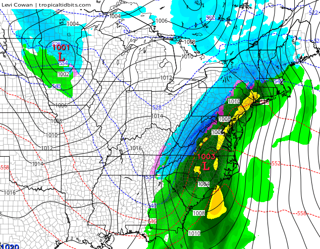 The GFS has the same snows Sunday into Sunday night and also wraps up the main storm just to our east by late Monday…