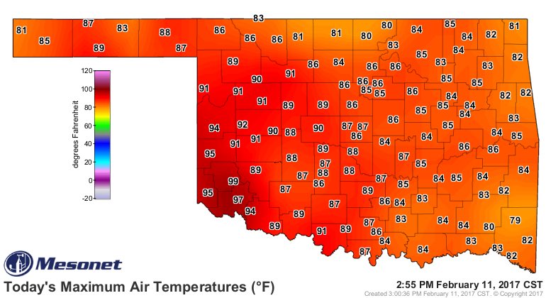 Parts of Oklahoma were near 100 degrees Saturday…