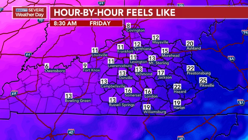 Cold settles in for Friday and Saturday with single digit wind chills Saturday morning…