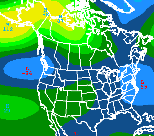 One of the driving forces in our recent run of below normal temps has been blocking across Greenland. This -NAO ,as it’s known, will begin to break down late this week. I find it interesting that all the models still hold on to lower heights and a baggy trough across the eastern part of the country. Check out the European Model 500mb Height Anomaly Forecast…