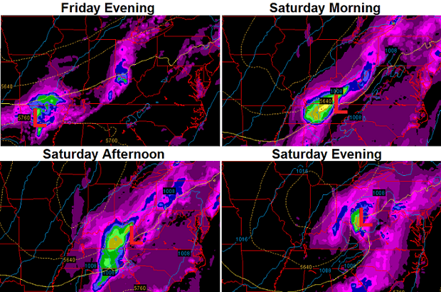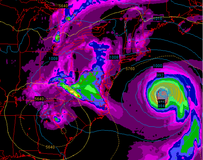 That almost looks like a late fall or winter track of the low. Here’s a better look at the rainfall being generated by the same model…