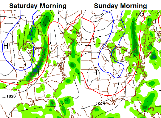 – Scattered showers and storms should move in along and ahead of the front as our winds crank up once again. Then the chill hits. Readings this weekend could very well give us a serious frost threat!