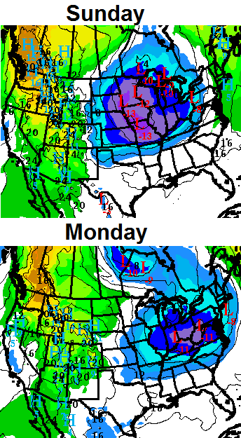 Saturday looks to feature a much better chance for showers and some thunder as a strong cold front swings through. Temps are tricky because of the timing of the front, but many areas look to stay in the 60s as winds crank up. The air behind our front for Sunday and Monday is very chilly and the European Model shows it…