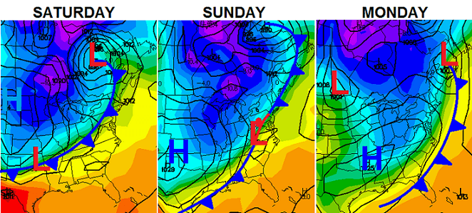 Thursday is your day to play hooky from work. Temps hit the 70s under partly sunny skies and a gusty southwesterly wind. Friday doesn’t look too bad as we get through much of the daylight hours on the dry side with highs back in the 70s. Winds will really crank up late Friday as a powerful cold front swings in from the northwest. This is a winter blast of cold air moving in behind this front.