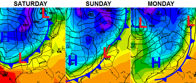 Sunday looks to be colder with upper 40s and low 50s on a gusty northwesterly wind. Skies will then clear out by Sunday night and this allows our temps to head into the upper 20s and lower 30s.