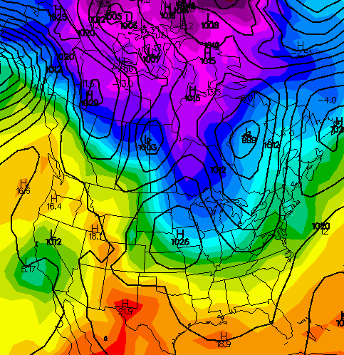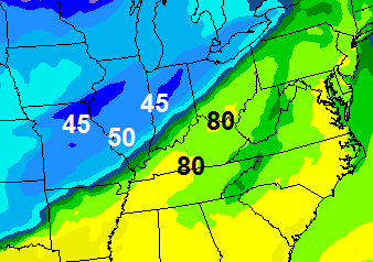 This front will have a nearly 40 degree temp drop behind it. Here’s the NAM temp forecast for late Friday Afternoon…
