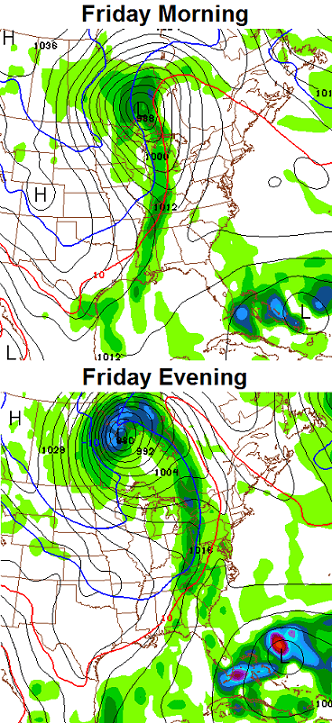 That front may be accompanied by a squall line of showers and thunderstorms as it works through here. It is also being pushed by a huge blast of cold air. Things look interesting behind some of the recent GFS model runs. Hmmm.