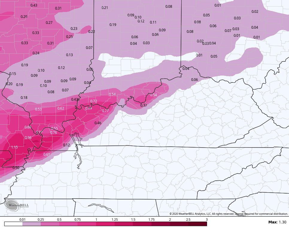 Again, the greatest threat is along the Ohio River Counties, but we will need to keep watch on just how far south this can get.