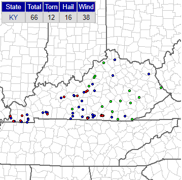 Again, those are just reports. We should be well into the hundreds by this point in the year. The spring severe weather season is likely the quietest in recorded history here in the Bluegrass state.