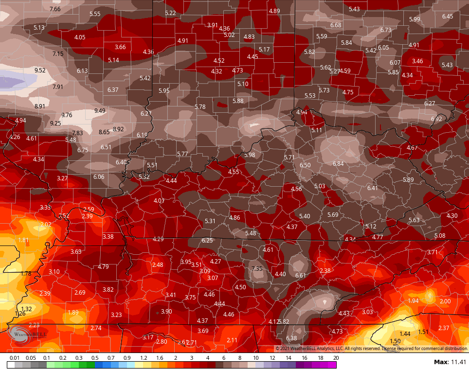 Yesterday’s high at my station near Bowling Green was 95°, with a Heat Index peak of 105°. We have had zero precip since last Thursday’s 1.85″, as the atmosphere in our area has seemingly remained capped. We could really use a good soaking rain.