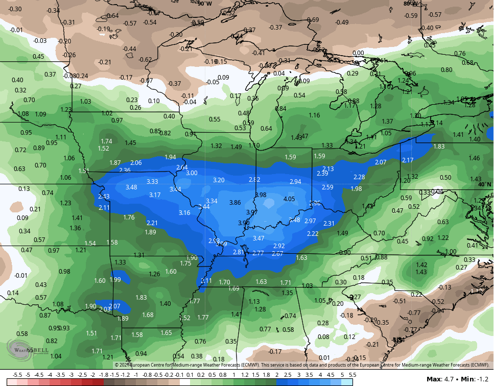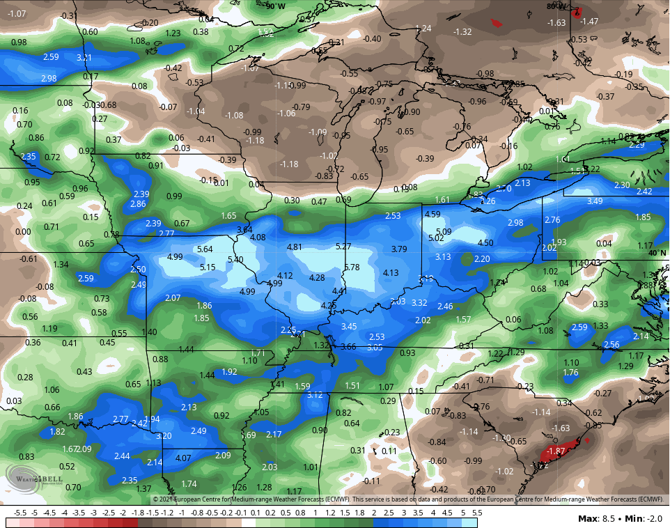 The last measurable rain at my PWS just south of Bowling Green was on July 1st, but nothing since, despite seeing storms on radar laying down sizeable precip amounts all around me. The storms are extremely localized; last night, the Mesonet site 2 miles from my location received over ½ inch of rain, while I saw only lightning in the distance. Hoping the stationary front produces, but I’m not holding my breath.