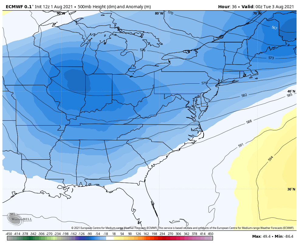 If we look ahead to the month of August as a whole, we find the CFS keeping things normal to below normal for the month…