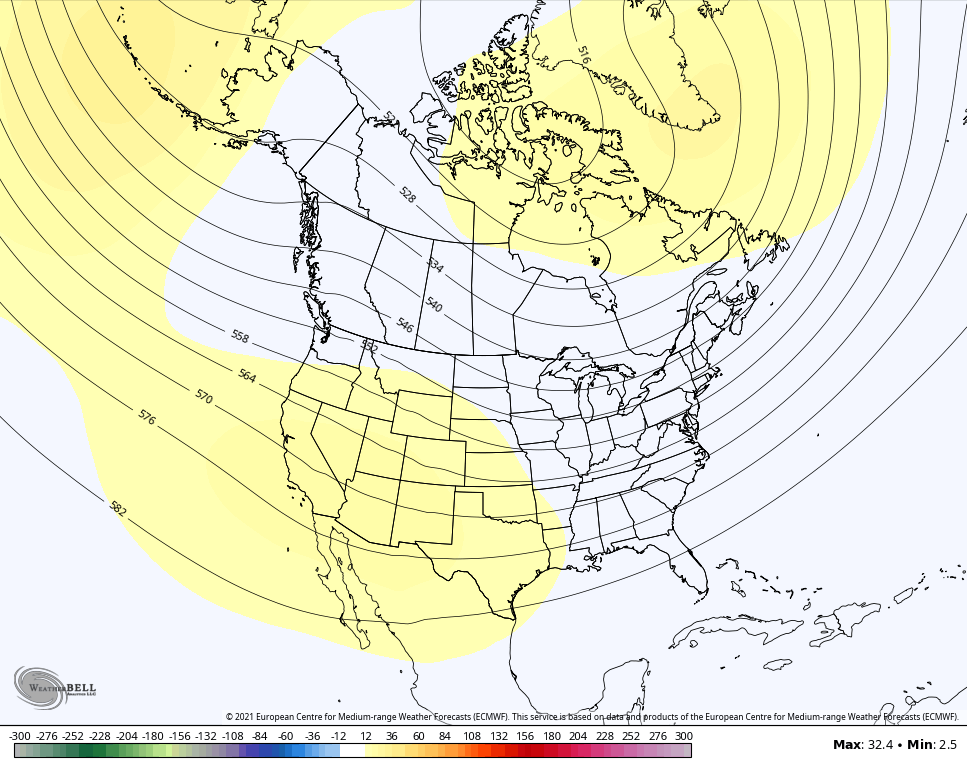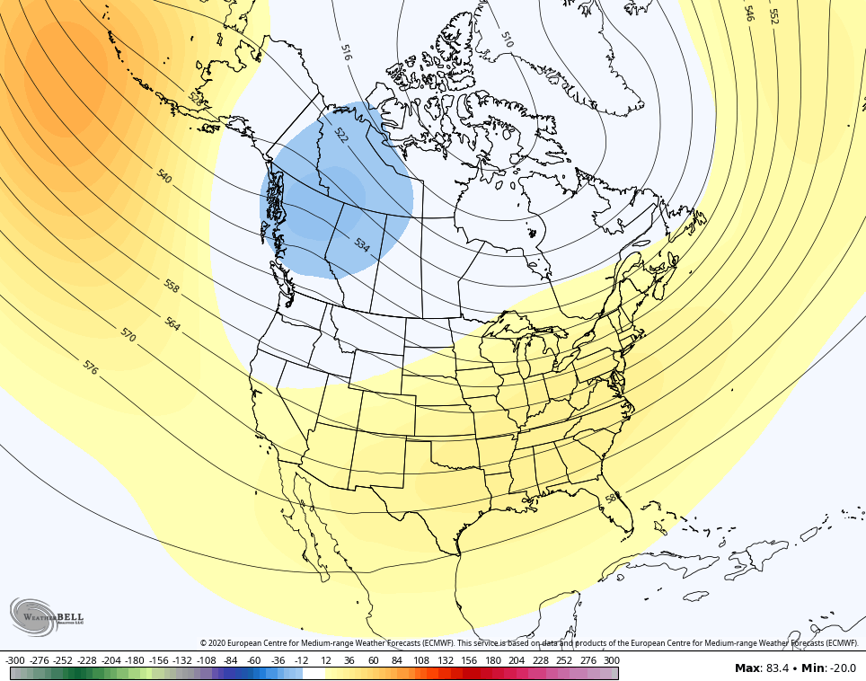 Notice how that suggests a continuation of the current pattern of ridging in the west and a trough in the east. This map at face value isn’t terribly impressive, but it is if you know the bias of the model. The above map suggests an early start to a rocking first half of winter.