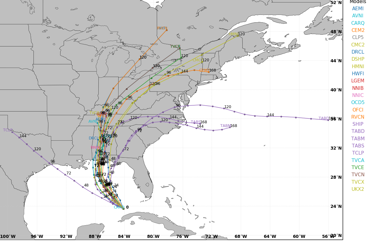 The latest spaghetti plots from the hurricane models are similar and bring the remnant low into Kentucky…