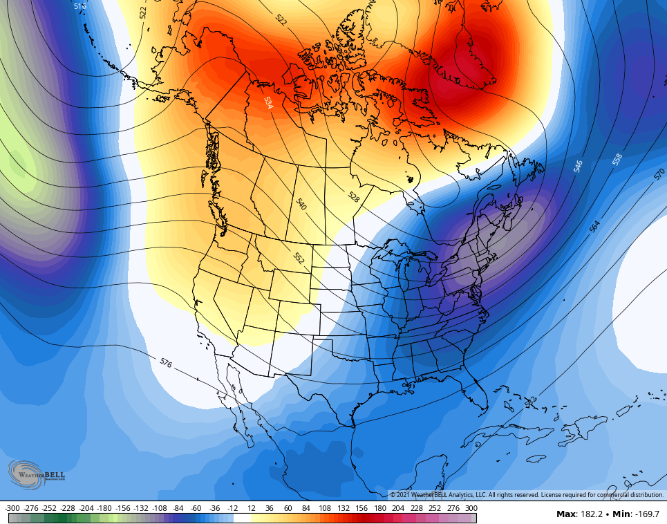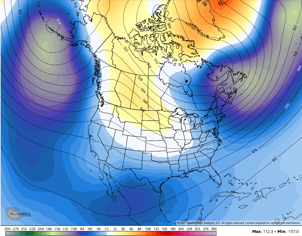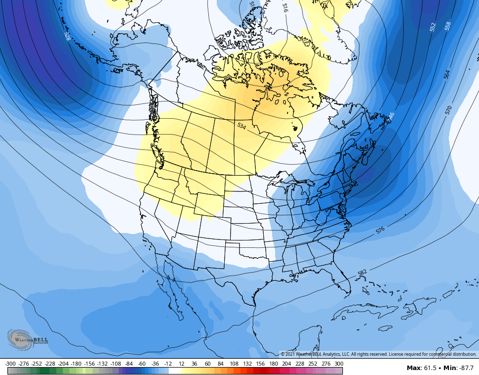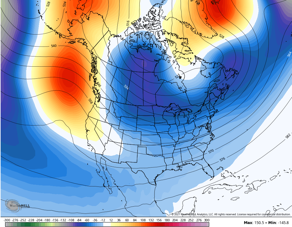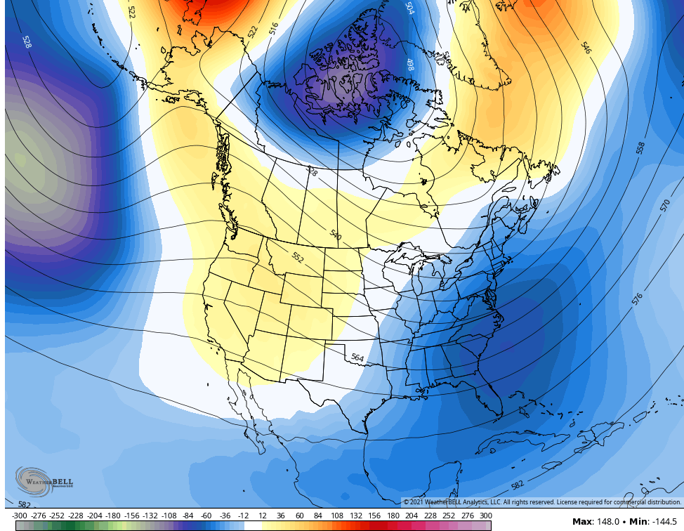 Let’s use this Friday as a check of the CFS model to see what it’s looking at for the upcoming winter. The true seasonal run of this only goes through November, but it’s showing the potential for another early start to winter with a trough in the east…