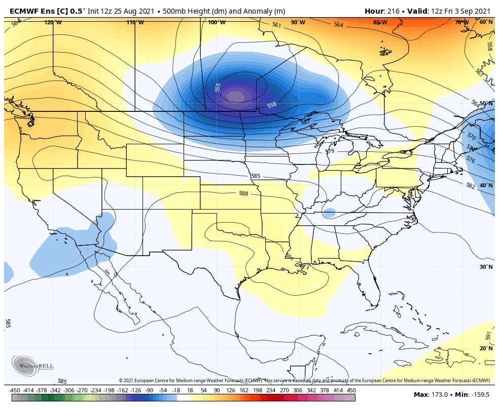 Once this storm clears the eastern half of the country, the EURO Ensembles have a healthy trough coming in Labor Day Weekend…