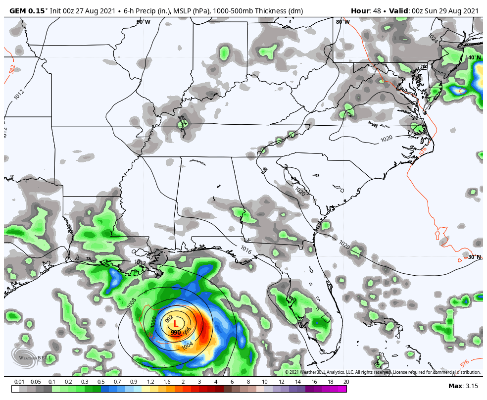 The ICON Model has a farther west solution with Ida and that results in a soaked region…