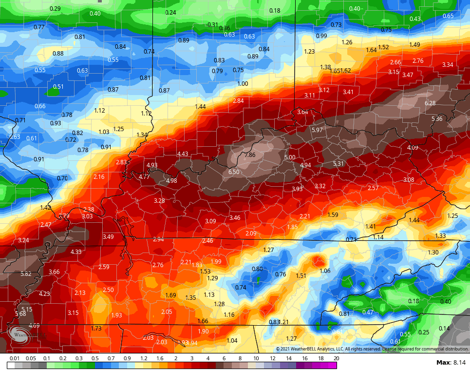 Again, all models will shift around from run to run with the track of the storm and that impacts rain totals around here. Still, confidence is increasing for some impact from Ida on Kentucky.