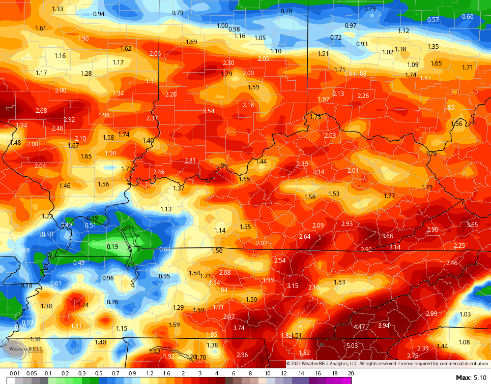 That setup can bring some strong storms in here and may also put down beneficial, but heavy rains. Here’s the GFS rainfall forecast over the next week…
