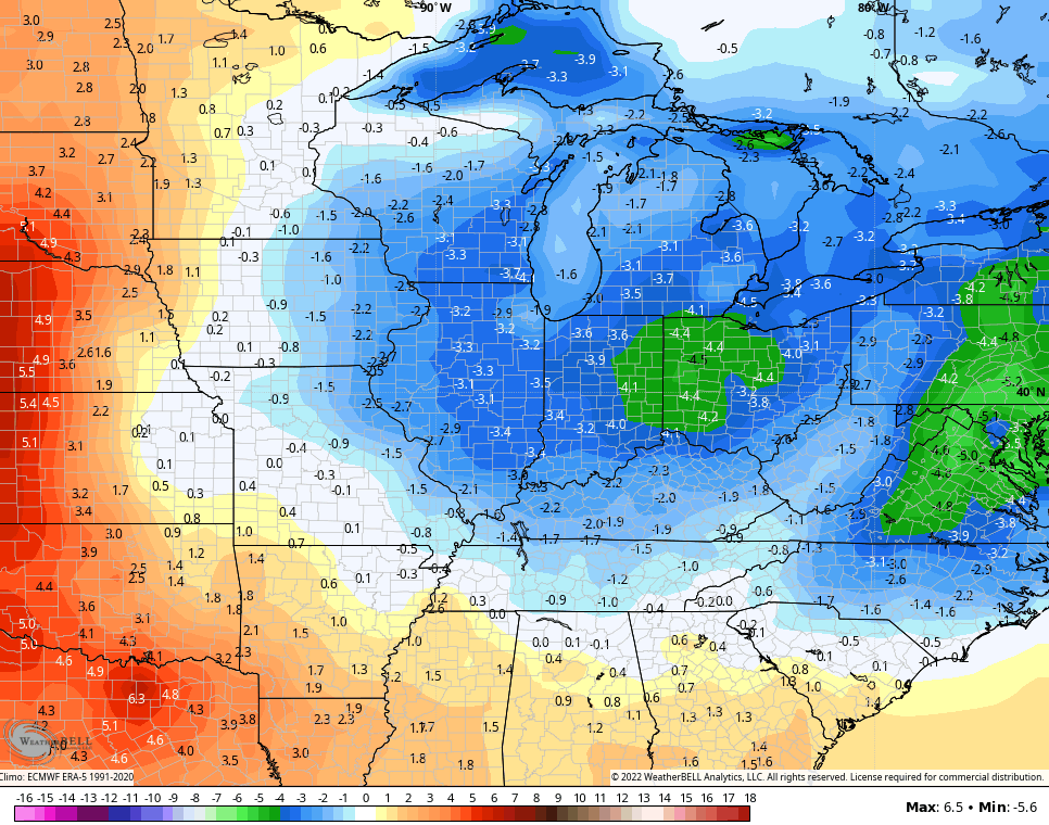 A cold front sweeps through on Saturday with a much better brand of air settling in for the weekend into Monday. The GFS Ensembles show a nice pocket of below normal numbers…