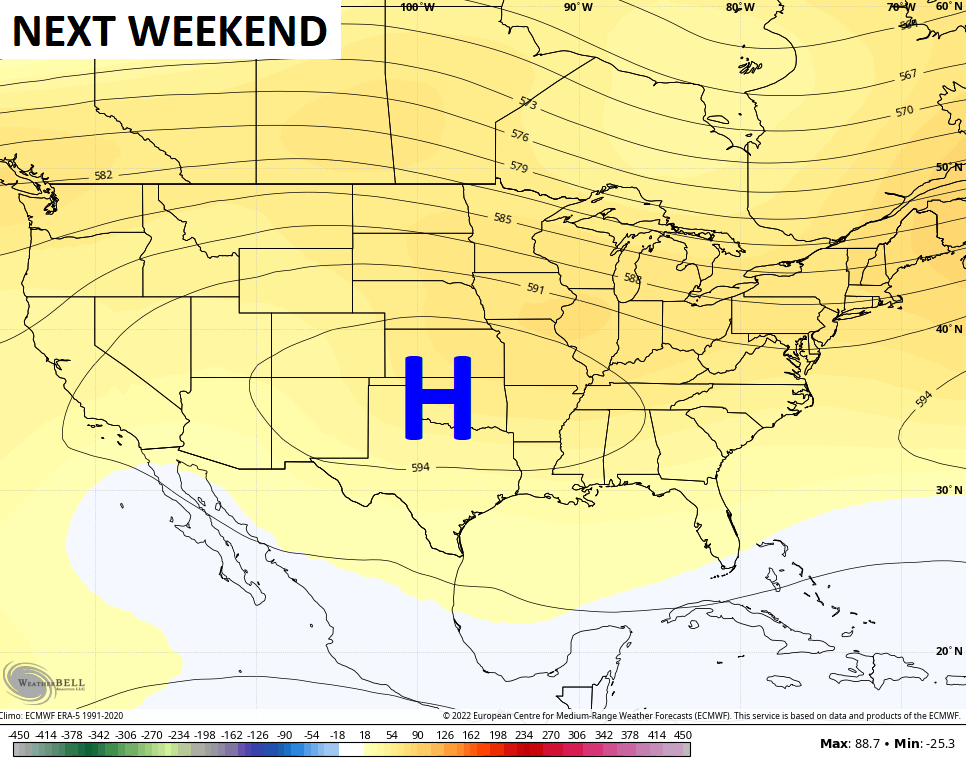 Another blast of heat of may try to surge back in here behind that next weekend. Check out the heat ridge building on the EURO Ensembles…