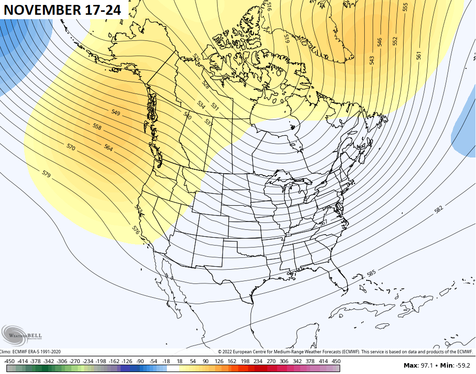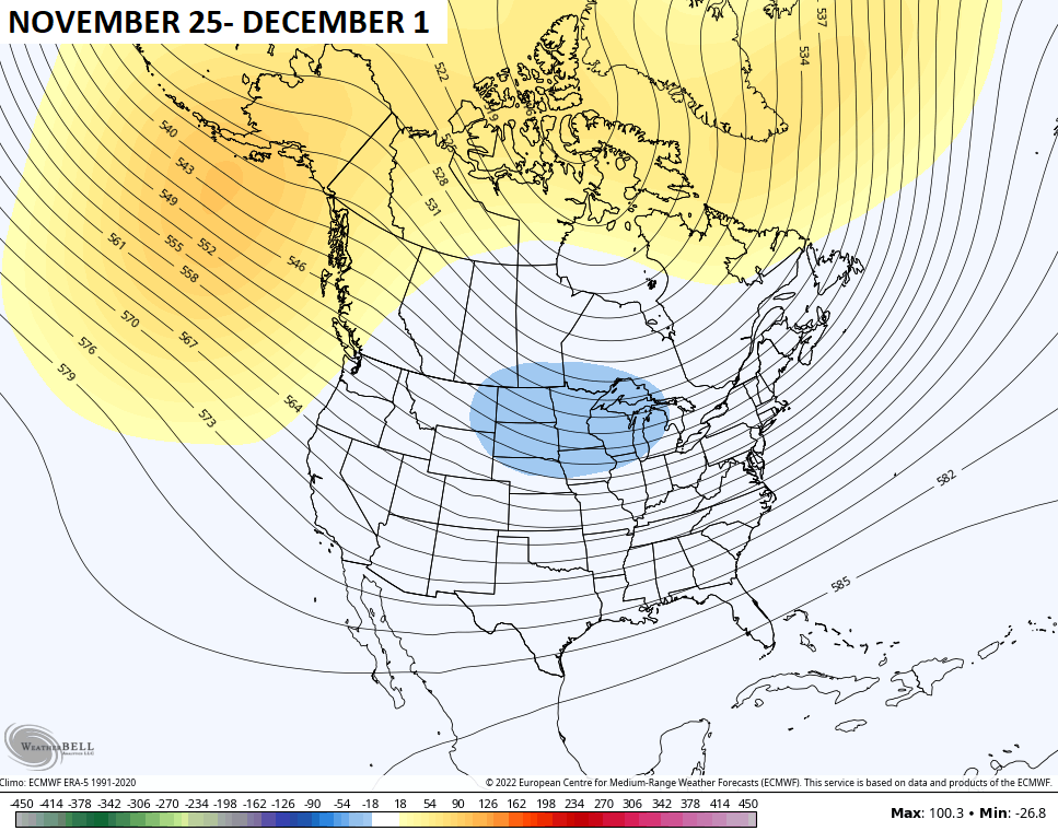 I have been arguing for an early start to winter and the EURO Weeklies are also on my side at the moment. Check out how they have the deepening trough getting established in our region before Thanksgiving…