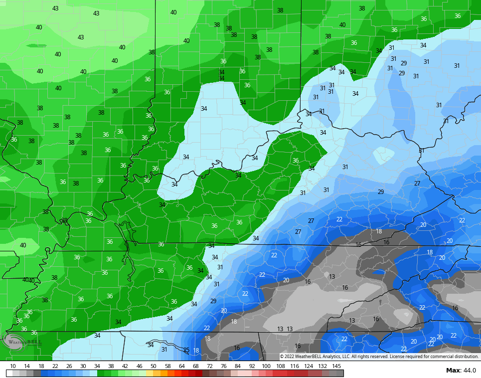 Temps today start in the 20s and end with 55-60 central and eastern Kentucky with 60-65 in the west. Winds will be very gusty and this is a sigh of things to come as the highs reach the 70s over the weekend.