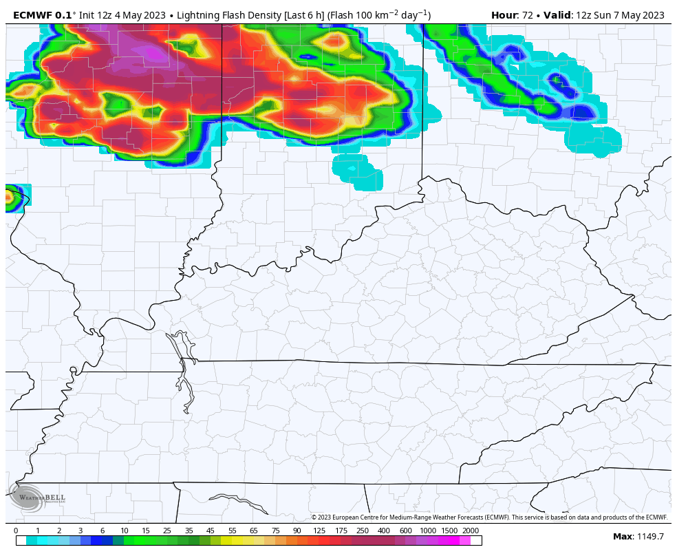 That same run of the EURO is showing quite a bit of lightning with these rounds…