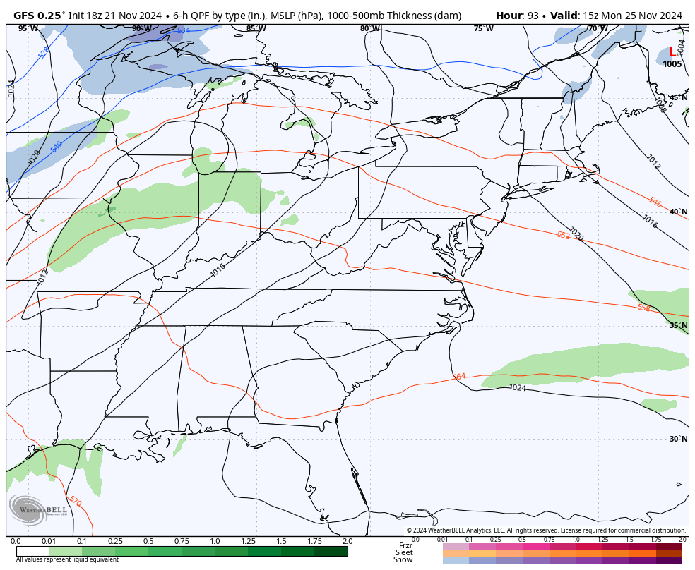 The long range pattern for Thanksgiving week into early December continues to look rather loaded with several systems impacting our region. Rain and/or snow will be possible during this time as the models change a bit from run to run as they try to grasp the tracks of each individual system…