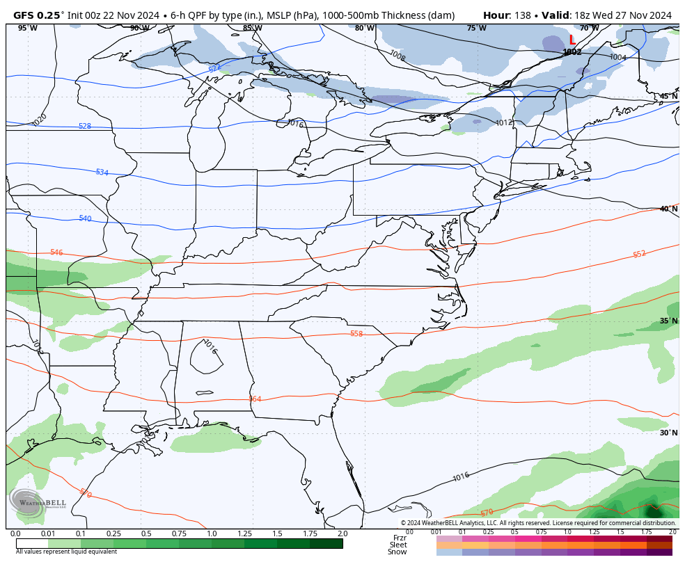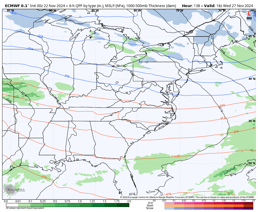 That leaves a west to east boundary across the region with additional storm systems likely to roll along it over the long Thanksgiving weekend. As expected, we find the operational models having issues with which system to focus on and where to put it.
